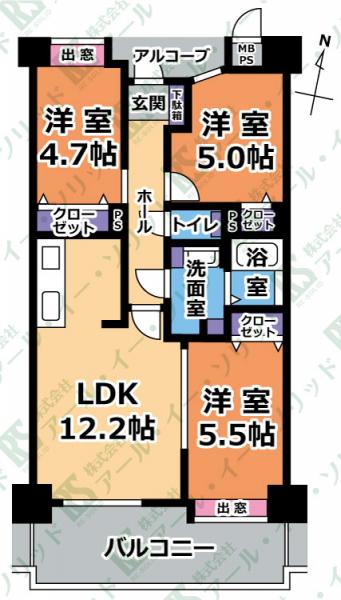 | 間取り詳細 | (LDK12.2・洋5.5・洋5.0・洋4.7) |