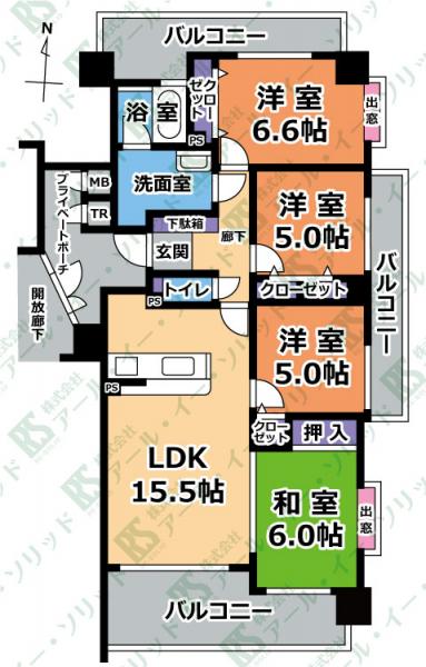 | 間取り詳細 | (LDK15.5・洋6.6・和6.0・洋5.0・洋5.0) |