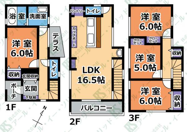 | 間取り詳細 | (洋6.0・LDK16.5・洋6.0・洋6.0・洋5.0) |