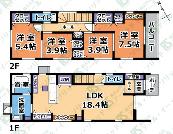 | 間取り詳細 | (LDK18.4・洋7.5・洋5.4・洋3.9・洋3.9) |