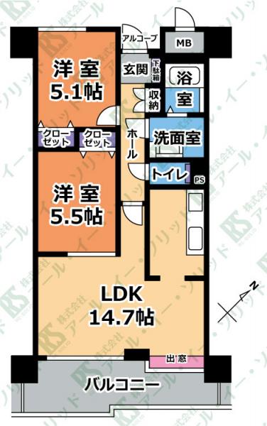 | 間取り詳細 | (LDK14.7・洋5.5・洋5.1) |
