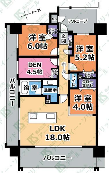 | 間取り詳細 | (LDK18.0・洋6.0・洋5.2・洋4.0・S4.5) |