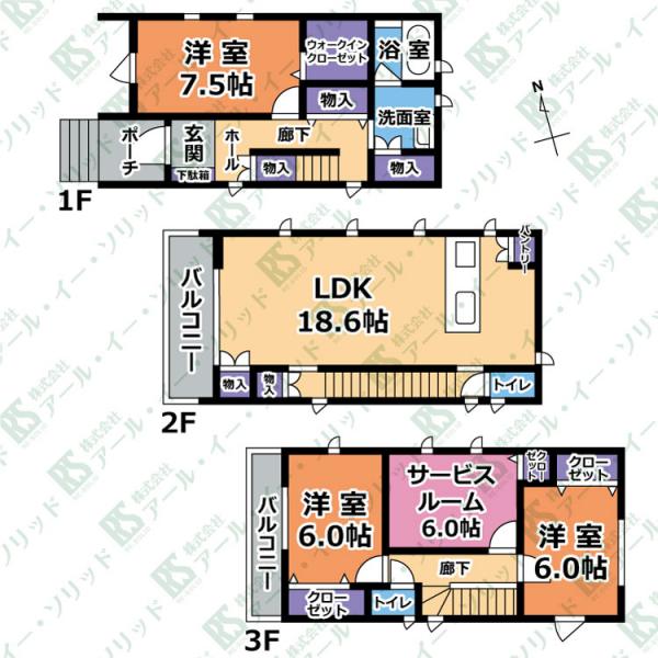 | 間取り詳細 | (洋7.5・LDK18.6・洋6.0・洋6.0・S6.0) |