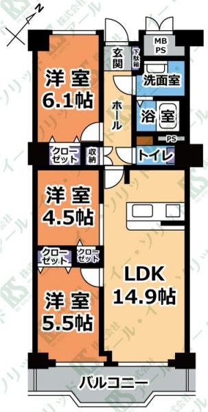 | 間取り詳細 | (LDK14.9・洋6.1・洋5.5・洋4.5) |