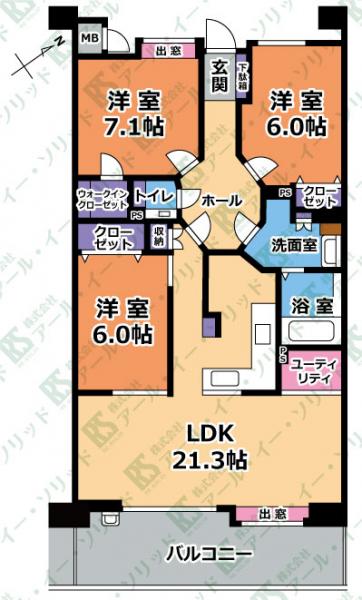 間取り詳細 | (LDK21.3・洋7.1・洋6.0・洋6.0) |