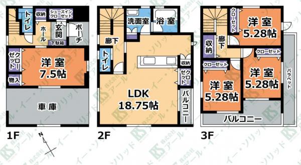 | 間取り詳細 | (洋7.5・LDK18.8・洋5.3・洋5.3・洋5.3) |
