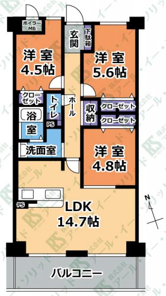 | 間取り詳細 | (LDK14.7・洋5.6・洋4.8・洋4.5) |