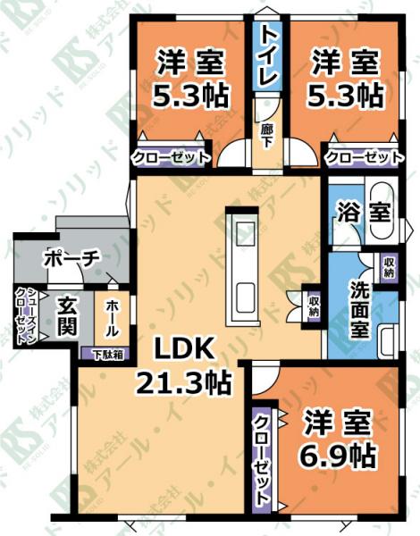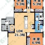 | 間取り詳細 | (LDK21.3・洋6.9・洋5.3・洋5.3) |