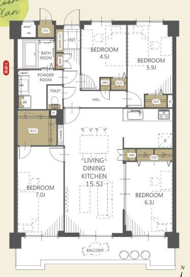 | 間取り詳細 | (LDK15.5・洋7.0・洋6.3・洋5.9・洋4.5) |