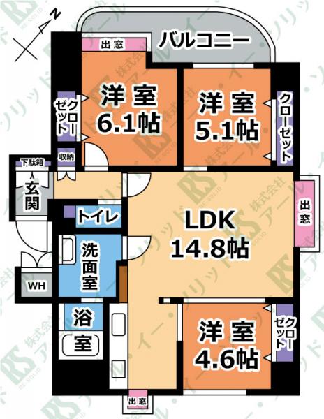 | 間取り詳細 | (LDK14.8・洋6.1・洋5.1・洋4.6) |