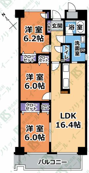 | 間取り詳細 | (LDK16.4・洋6.2・洋6.0・洋6.0) |