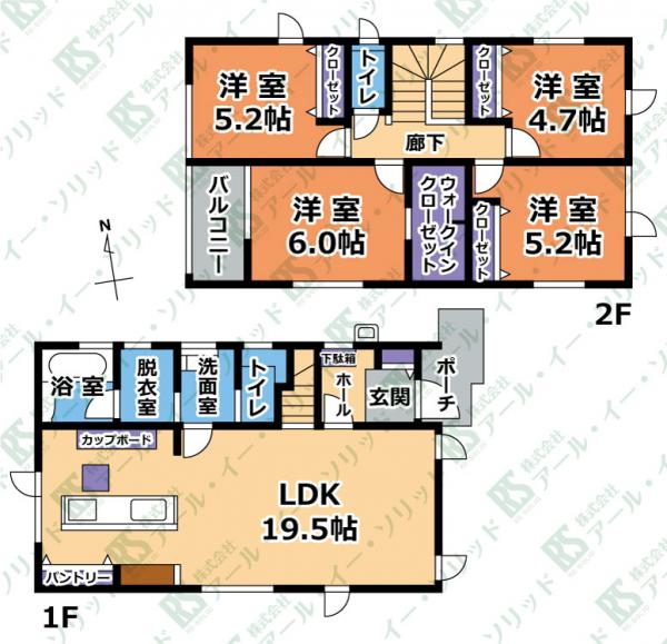 | 間取り詳細 | (LDK19.5・洋6.0・洋5.2・洋5.2・洋4.7) |