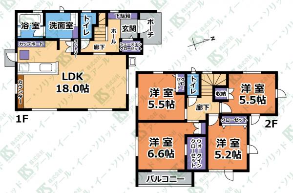 | 間取り詳細 | (LDK18.0・洋6.6・洋5.5・洋5.5・洋5.2) |
