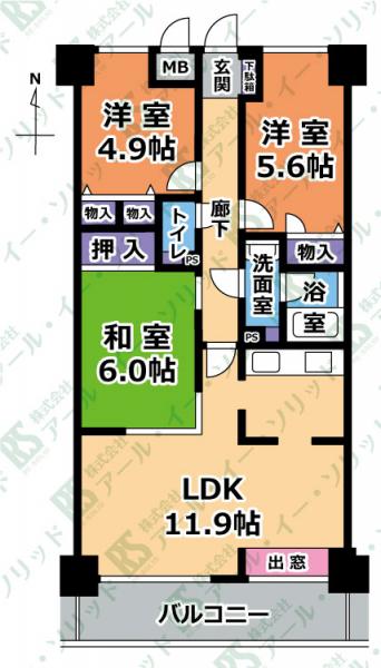 | 間取り詳細 | (LD11.9・K0.0・和6.0・洋5.6・洋4.9) |