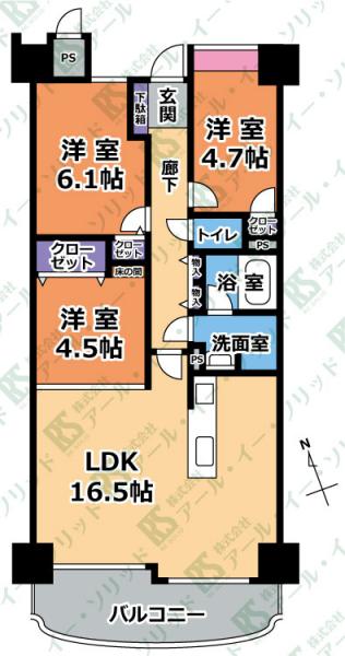 | 間取り詳細 | (LDK16.5・洋6.1・洋4.7・洋4.5) |