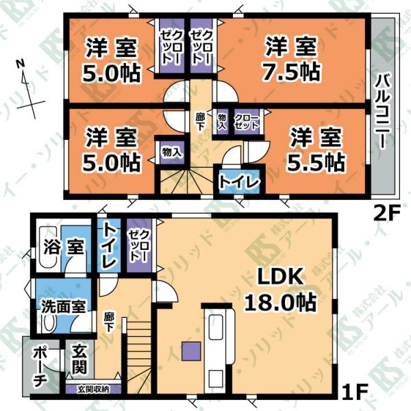 | 間取り詳細 | (LDK18.0・洋7.5・洋5.5・洋5.0・洋5.0) |