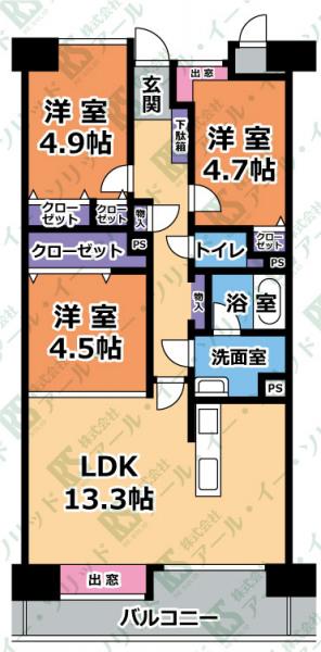 | 間取り詳細 | (LDK13.3・洋4.9・洋4.7・洋4.5) |