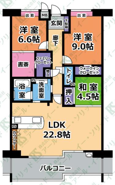 | 間取り詳細 | (LDK22.8・和4.5・洋9.0・洋6.6・S3.0) |