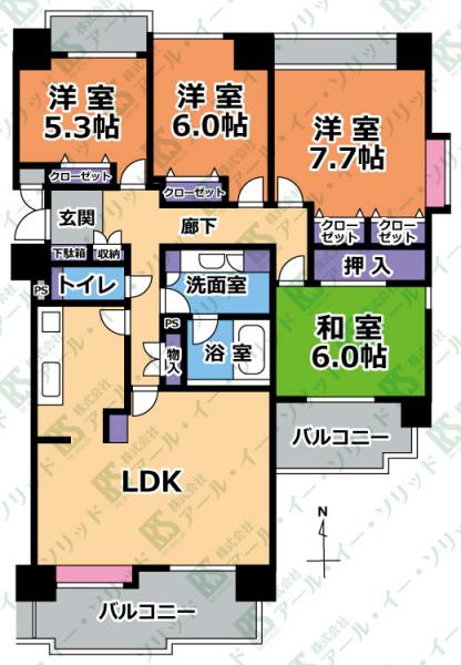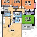 | 間取り詳細 | (LD12.8・K0.0・洋7.7・洋6.0・洋5.3・和6.0) |