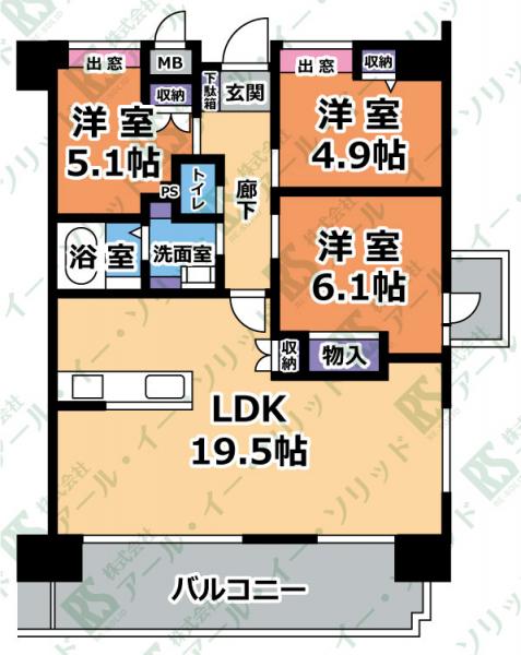| 間取り詳細 | (LDK19.5・洋6.1・洋5.1・洋4.9) |